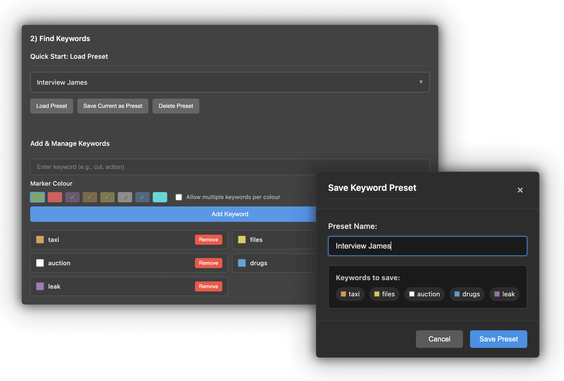 Standard search tools are temporary. Keyword Marker is permanent. Whether you're looking for specific action cues across 50 takes or mapping out topic clusters in a feature-length documentary, this plugin creates a visual map of your story that stays with you until the final export. Stop wasting time searching your own footage.